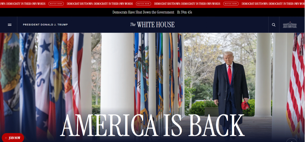 Na stronie Białego Domu pojawił zegar odliczający czas zamknięcia rządu z adnotacją, że jest to wina Demokratów. „Democrats Hvae Shut Down the Government” – widnieje na samej górze strony.